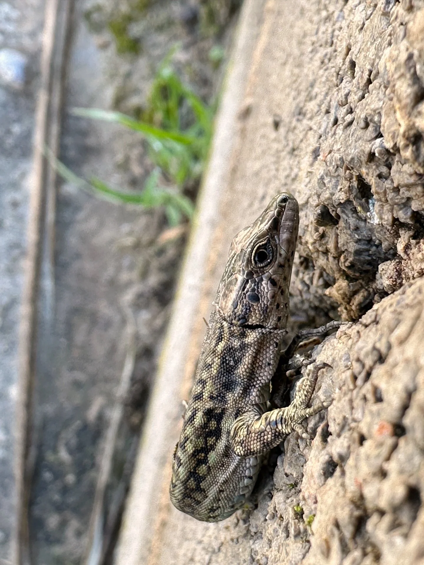 La maquinita con pantalla me dice que es una lagartija roquera, pero yo creo que es la mucho más común lagartija ibérica.